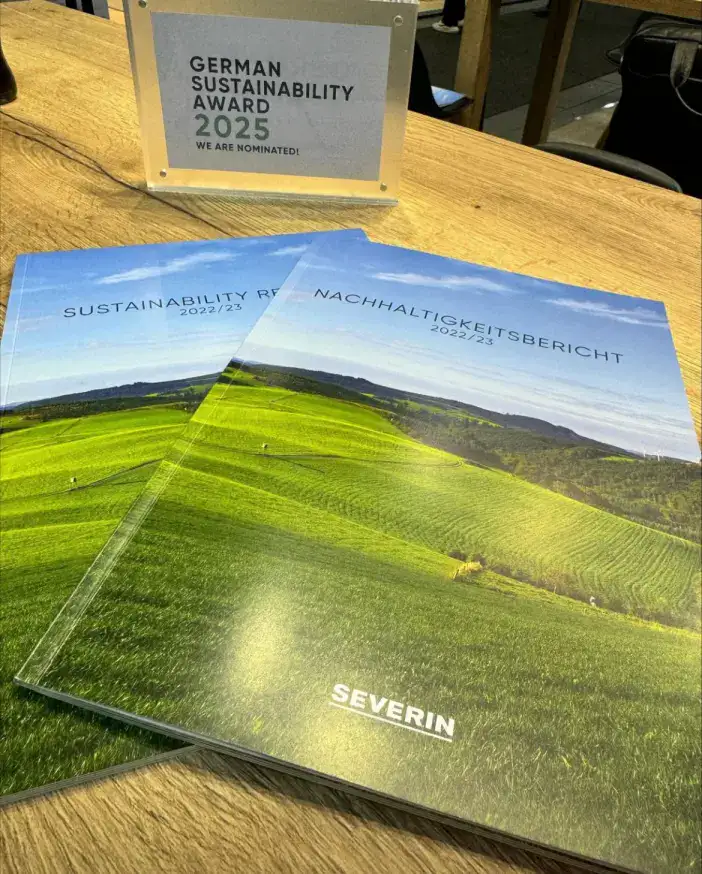 Ensimmäisen virallisen vastuullisuusraportin myötä Severin osoittaa avoimesti, mitä jo tänään on mahdollista – ja mitä voimme parantaa huomenna. Kohokohtana Severin on ehdolla Saksan kestävän kehityksen palkinnon (German Sustainability Award) saajaksi – vahva viesti siitä muutoksesta, jota haluamme olla mukana edistämässä.