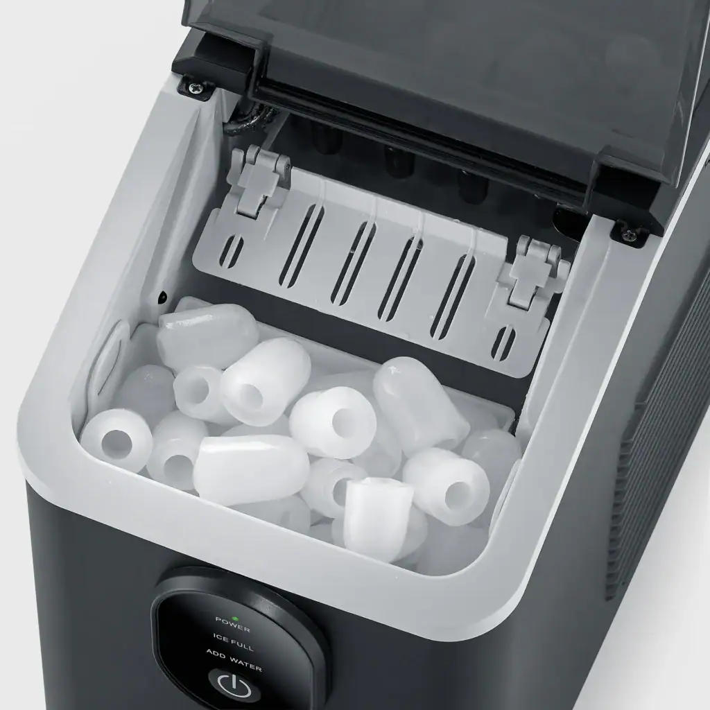 EZ 7415 -jääpalakone vakuuttaa nopealla suorituskyvyllä ja arkea helpottavalla käyttömukavuudella. Kompakti laite valmistaa tuoreita jääpaloja vain muutamassa minuutissa – täydellinen spontaaneihin juomiin, juhliin tai kuumiin kesäpäiviin. Tilaa säästävän ja huolella suunnitellun muotoilun ansiosta EZ 7415 sopii vaivattomasti mihin tahansa keittiöön tai baariin ja on aina käyttövalmis.